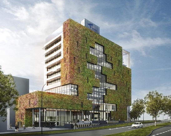 A greenhouse above the building purifies the air and can deliver heat to the entire building. The green façade purifies air from the nearby road and railway. According to Kraaijvanger, tests in labs of the Eindhoven University of Technology have proven that the façade filters 30% of nitrogen and carbon dioxide from the air.