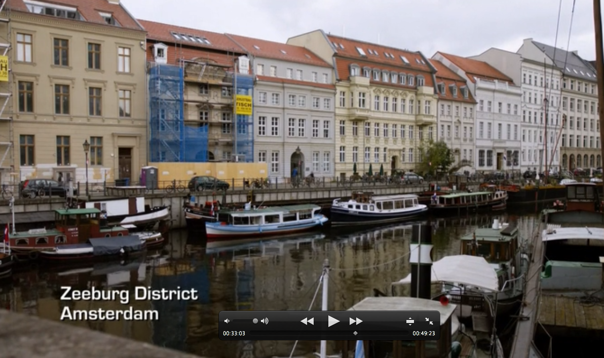 First, the screenshot above. The Zeeburg district has been part of East Amsterdam since 2010. Houseboats and a canal were a good idea, but the architecture isn’t Dutch, and if that’s not a problem, the German yellow construction sign should be, as it reads ‘bau’ (‘construction’ in German) instead of ‘bouw’ in Dutch (hard to see here). You could have told me this was Denmark and I would have bought it without the sign. The reference to Flevopark in the east was spot on, but the street called Tolstraat is in another district. No separate bike paths could be seen, and streets and houses were way too big to be in Amsterdam. Oh, and the yellow license plates had too many letters on them to be Dutch ones, but points for the blue one on the taxi.